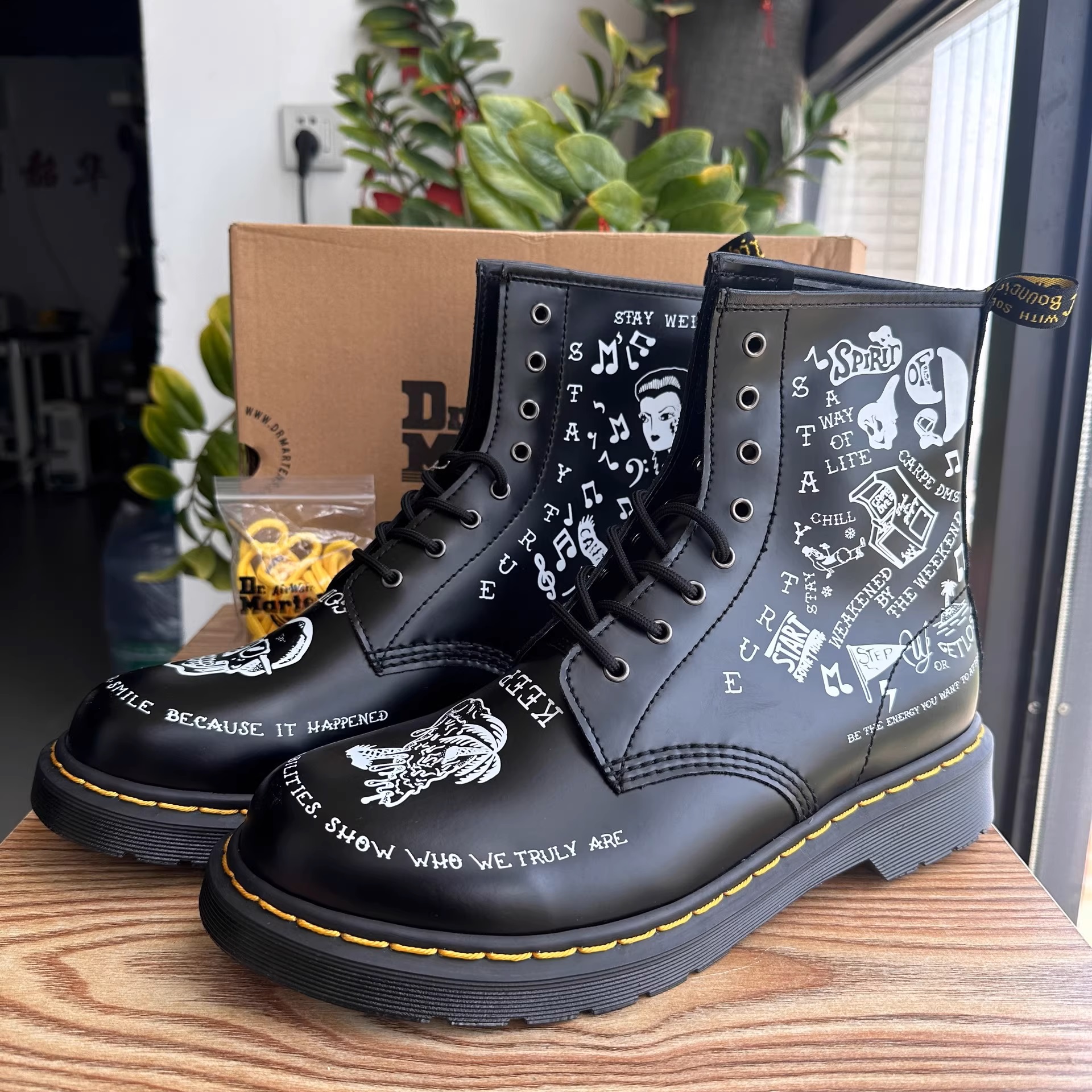 Dr. Martens 1460 Scribble 25245009 Botas Combat Boots Black Unisex 8-Eye